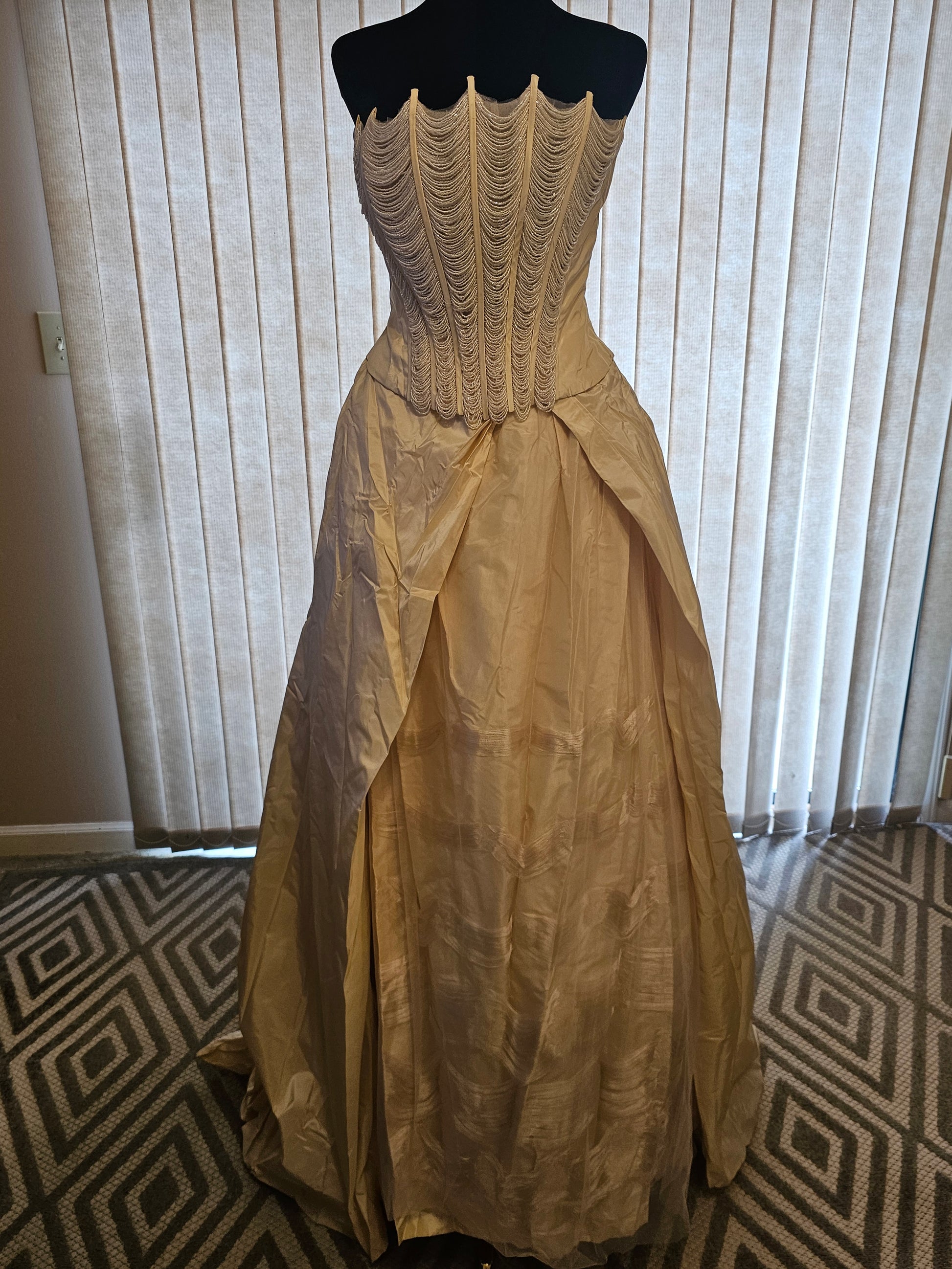 Floranna beige strapless wedding dress. into elegance with this stunning strapless cream wedding dress designed to make your special day unforgettable.