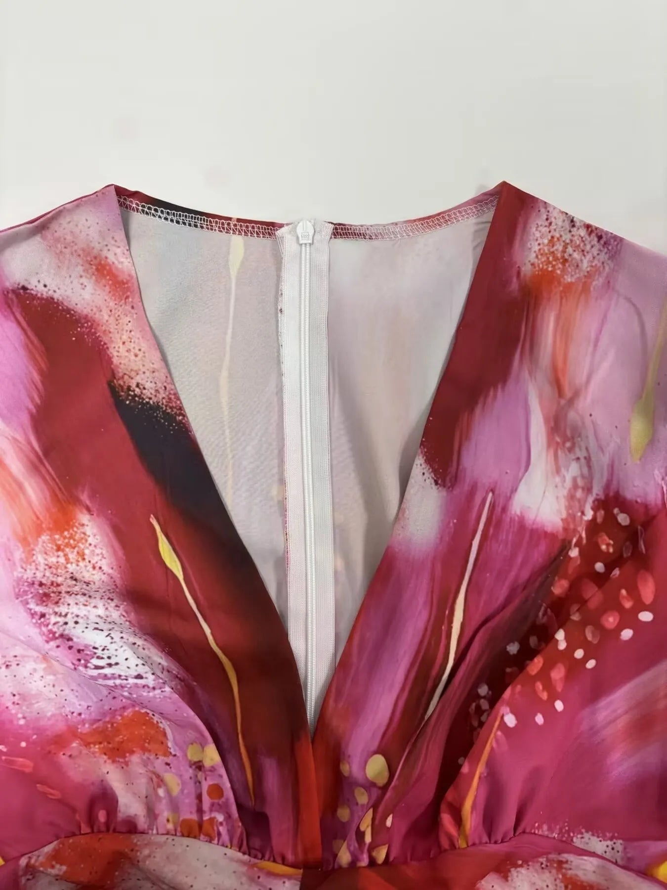 Ruched Front V-Neck Long Sleeve Maxi Dress